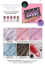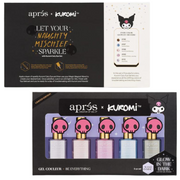 In this limited edition set of five playful colors, Kuromi™ Caty Eye Gel Couleur lets you experience all the shifting colors of troublemaking and exciting charm. Use the included Magic Magnet Wand to shift the colors to your desired finish. Each magical bottle of Kuromi™ Caty Eye Gel Couleur comes with Aprés Nail’s innovative Brush-X™, making application fun and easy! The Kuromi™ Caty Eye Gel Couleur is HEMA, vegan cruelty-free, and safe for natural nails with a base gel coat and great with Gel-X® Tips.