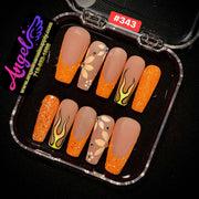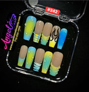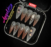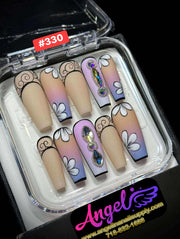 Discover our exclusive collection of handmade press-on nails, where artistry meets style. Each set is carefully designed with unique patterns, from delicate florals and chic marble effects to bold charms, ombré gradients, and shimmering accents. With a variety of nail shapes and lengths – stiletto, coffin, almond, or square – you can easily find a style that suits your mood and personality.