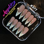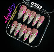 Discover our exclusive collection of handmade press-on nails, where artistry meets style. Each set is carefully designed with unique patterns, from delicate florals and chic marble effects to bold charms, ombré gradients, and shimmering accents. With a variety of nail shapes and lengths – stiletto, coffin, almond, or square – you can easily find a style that suits your mood and personality.