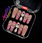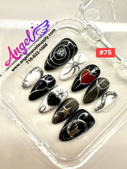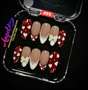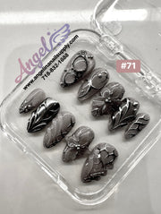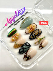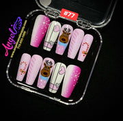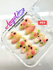 Explore our exclusive collection of handmade press-on nails, crafted with precision and creativity. Every set features stunning, unique designs—from delicate florals and chic marble patterns to bold charms, ombré gradients, glitter accents, fruit themes, holiday looks, and more.