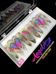 Angelina Handmade Custom Press-On | Long Nail Design #001-#029